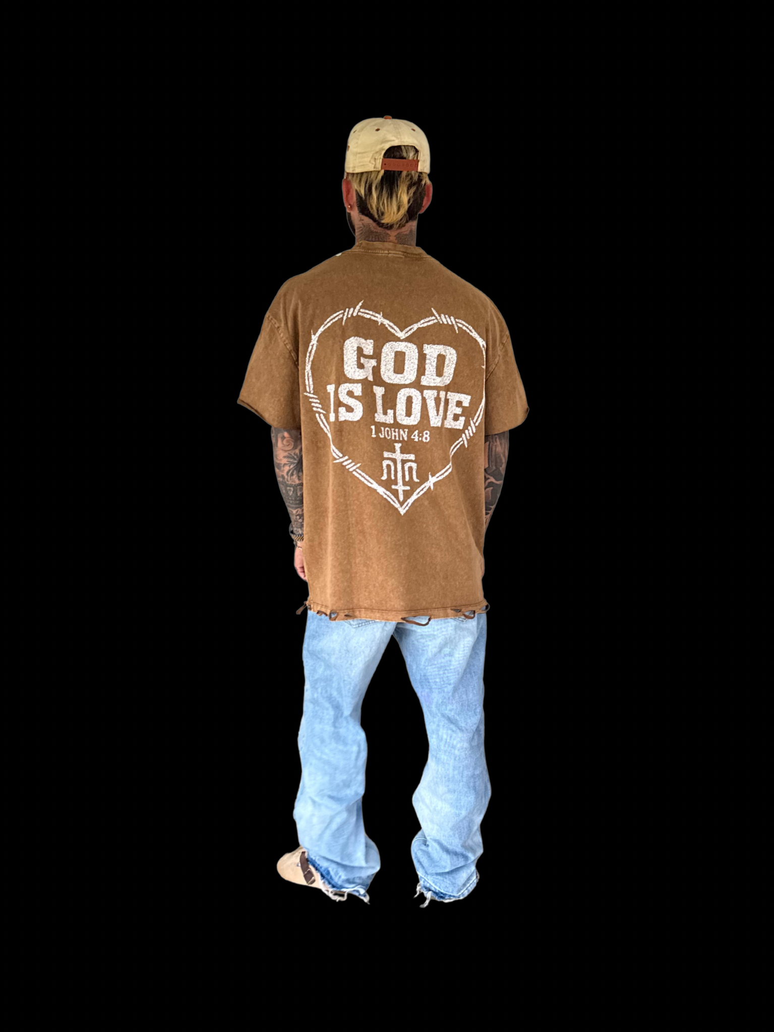 Model is 5’8’’ 170lbs wearing size XL w/ Distressed Hemming.